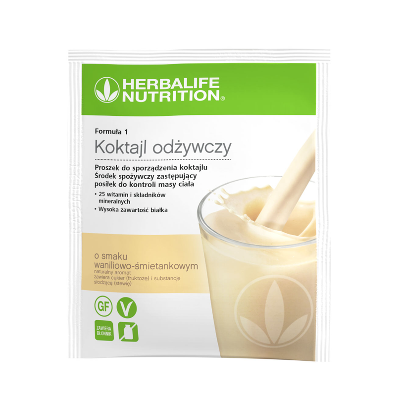 Delektuj się koktajlem Formuła 1 codziennie jako pożywnym posiłkiem. Delikatnie wstrząśnij przed każdym użyciem, by zawartość nie osiadła na dnie. Wymieszaj 2 łyżki stołowe proszku (26 g) z 250 ml zimnego, półtłustego mleka (1,5% tłuszczu). Jeśli chcesz przygotować wegański koktajl bez nabiału, wymieszaj F1 z 250 ml wzbogaconego napoju sojowego. Aby przygotować zdrowy posiłek bez mleka, wymieszaj Formułę 1 z Protein Drink Mix i wodą.
